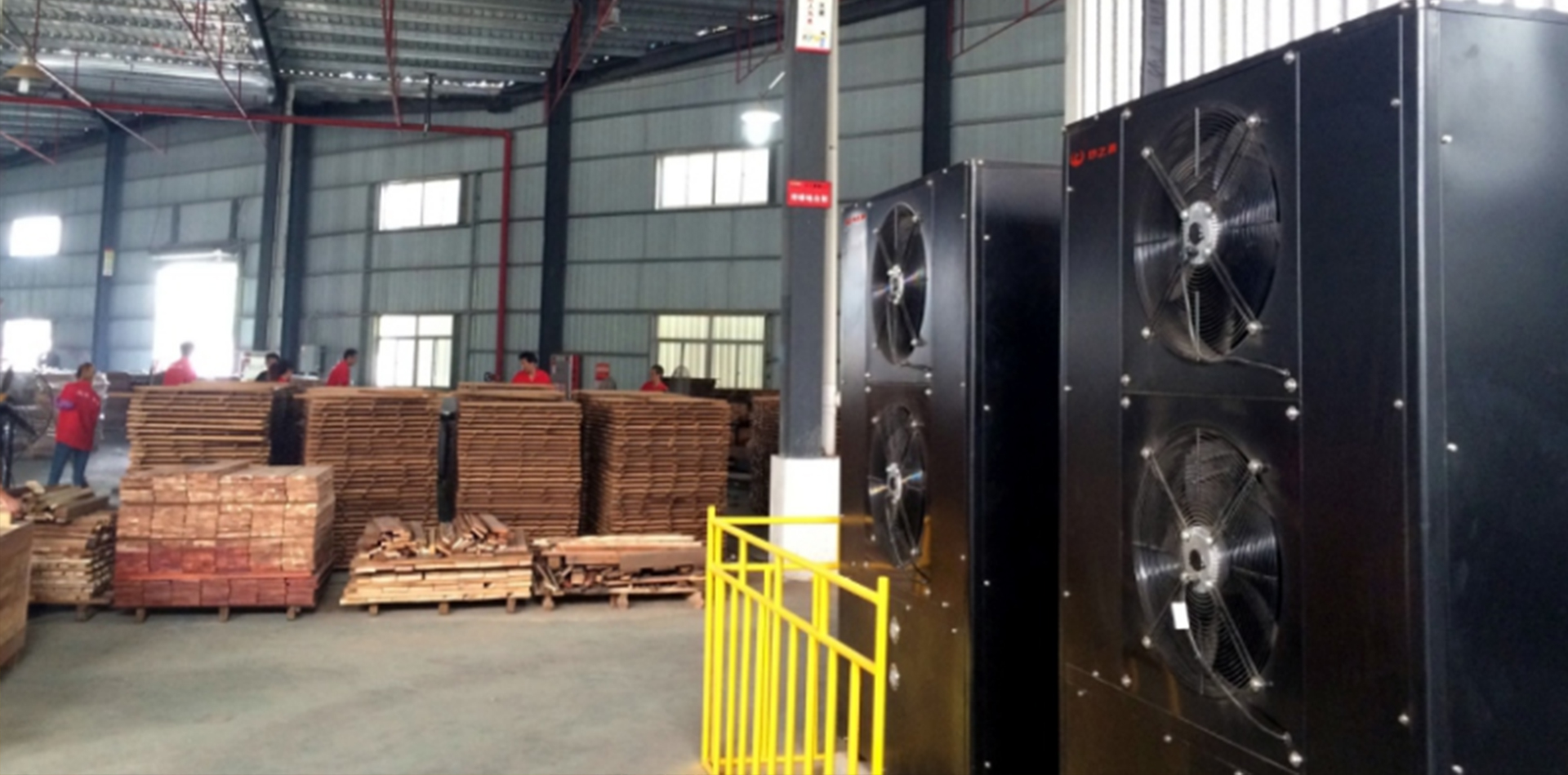 2)針對木材加工,提供原木鋸材烘干、板材二次干燥。采用熱之源研發的工業級高溫熱泵機組制熱,配套木材智能